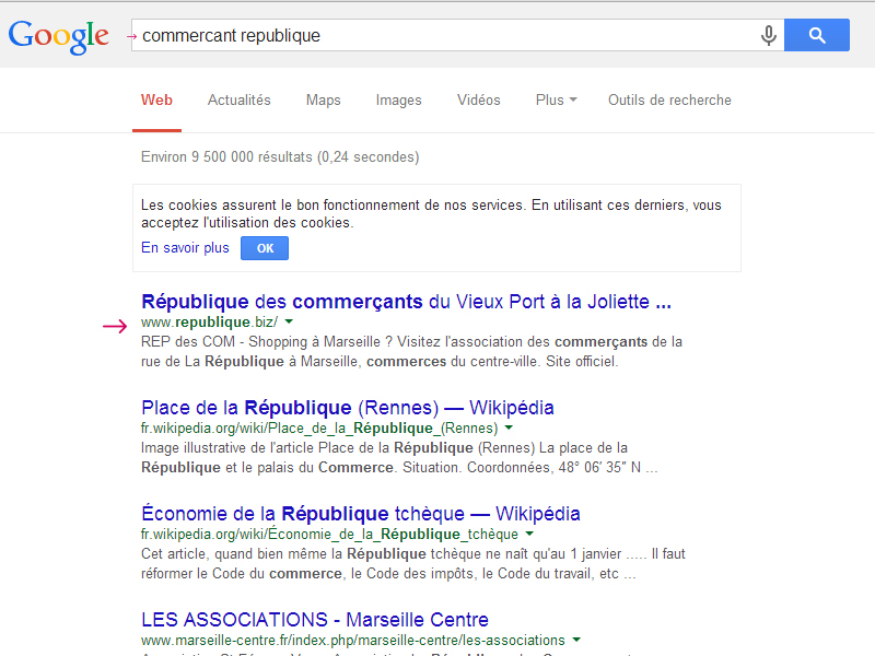 - “commerçant republique” 9 500 000 résultats → 1ère position