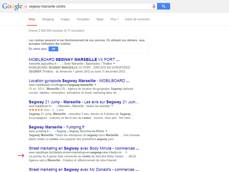 - “segway marseille centre” : 2 820 000 résultats → 5 ème position